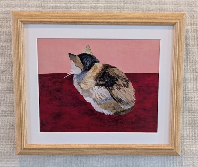 # 商品説明文 ●フレーム付き印刷タイプ(額縁外寸法 : W272×H322×D12mm)● 受注して印刷をかけるという流れになりますので2~3日印刷にお時間がかかります。 印刷サイズはA4サイズより少し小さいマット中抜き寸法 : W181×H231mmサイズになります。 私のサインは印刷物はぴったり張り付けられているのですが、裏にサインしています。 *この作品『猫』は、サイズ変更版になります。身近な存在で猫を仕上げたく、毛並みを少し、野良猫が飼い猫になったら愛情がいっぱいになるような気持ちをイメージして描きました。温かさの表現で赤とピンクにしています。見るたびに優しさを感じ、心が和むことでしょう。1枚目の写真は前画板:ガラスを外して照明をつけて撮影し、2枚目は照明をつけて前画板:ガラスをつけて飾った時の写真を添付しています。(少し反射して見えるかもしれません)