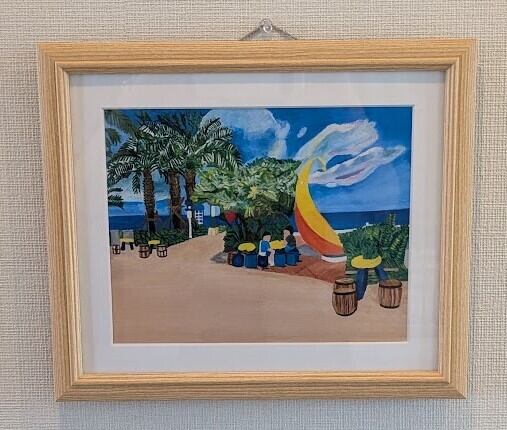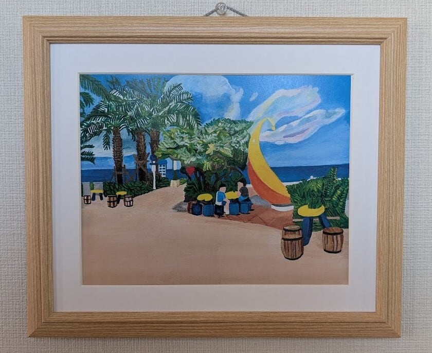 *この作品『アメリカンビレッジ』は、沖縄のアメリカンビレッジで生まれたオリジナル作品です。2025年第34回全国アートサロン絵画大賞展に入選した原画をスキャンし、高品質な印刷を施しています。ビビッドな色合いで明るく楽しい雰囲気を表現しており、観る人々に心温まる感覚を届けます。